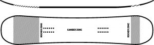 Directional Rocker profile: Featuring rocker in the nose and a camber zone extending under the feet and through the tail.