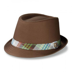 The Dakine ARCHIE hat has swung the brims front down and back up. The stiff hat has sewn around a plaid ribbon and on the left side of the Dakine Shield.