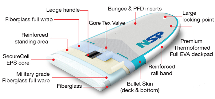 - Reinforced rail bands protects against paddle impact.