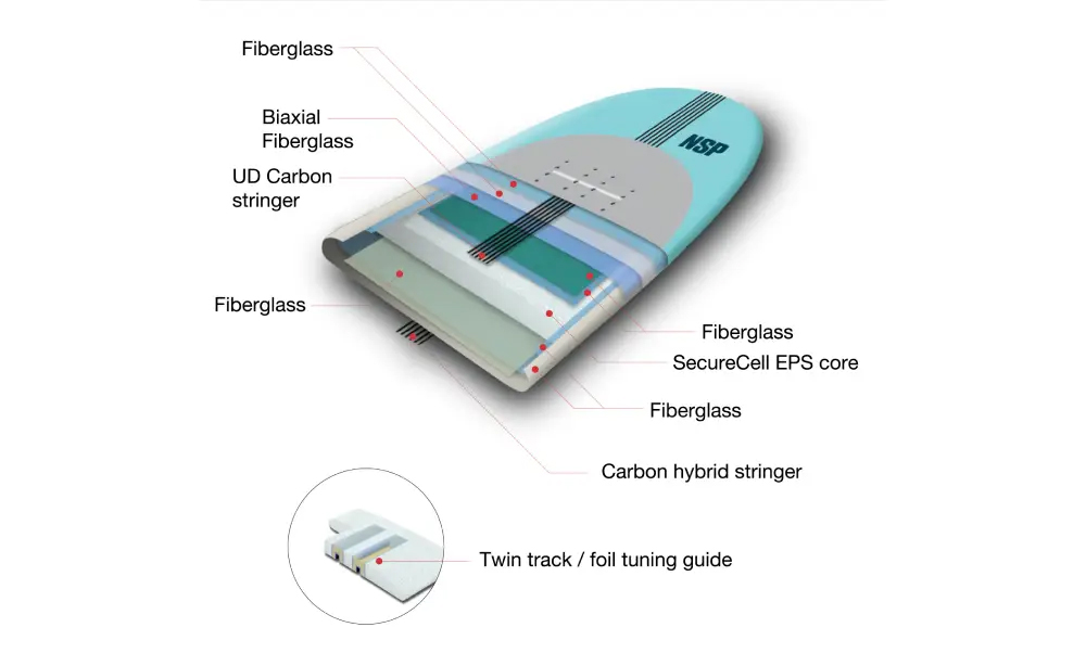 • Enough buoyancy and stability to recover in rough water and stay comfortable when you are not on the foil.