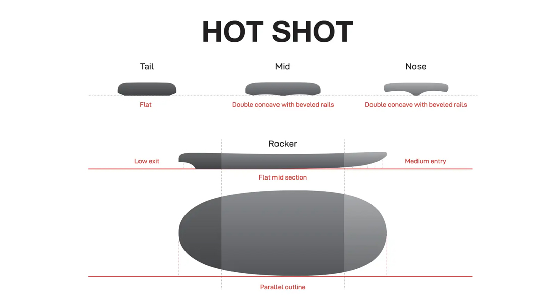 • Hybrid carbon technology – lighter weight construction for stiffness, maneuverability and glide